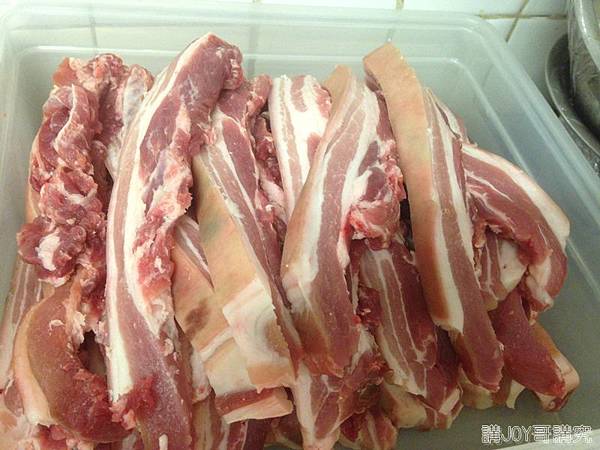 首先要處理豬五花,兩大塊豬肉要先去骨,