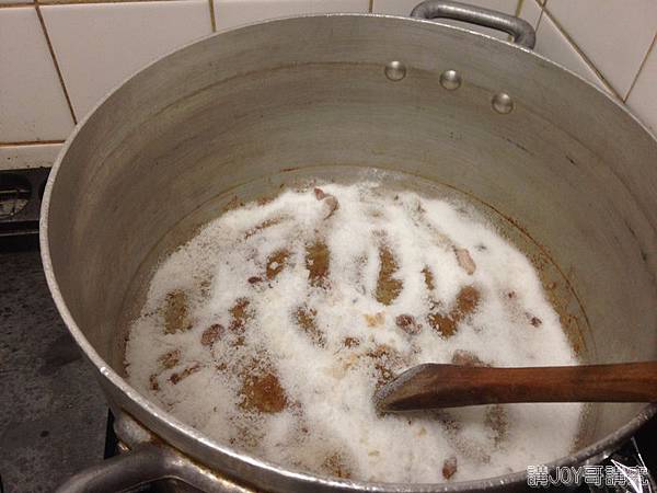 然後用剩餘的油炒糖,炒到變焦糖以後,