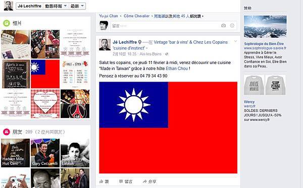 然後他就把哥標註在他臉書訊息上公布明天餐廳要提供台灣菜....