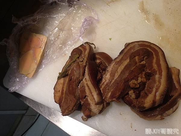 看到準備中的鴨肝及爌肉一起出現在砧板上,