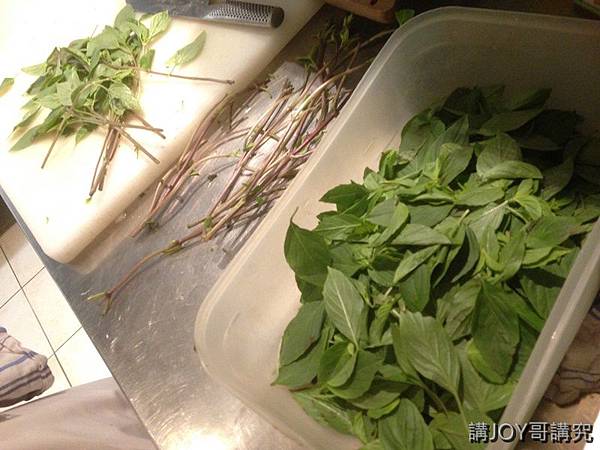 有點麻煩,當時怕來不及哥還大膽叫Chef也來一起剝九層塔葉。