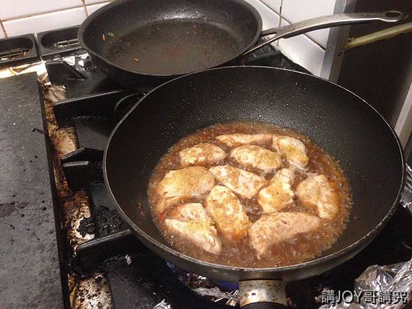 儘管有了正妹同事協力製作前菜,哥有較多時間可以放在主菜專心炒三杯雞,